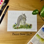 This sweet watercolor features a curious little armadillo nestled in a bed of grass and colorful Texas wildflowers. With soft brushstrokes and playful detail, it captures the quiet charm of a Texas native in its natural setting. A perfect piece for animal lovers, nature enthusiasts, or anyone who loves a touch of Southern whimsy.