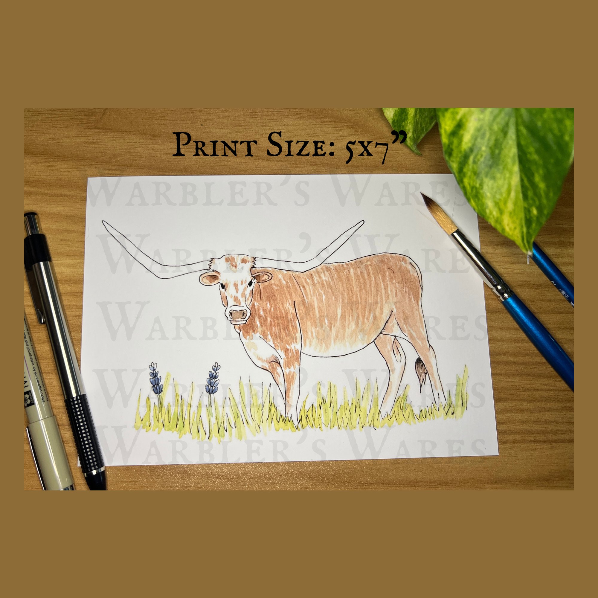 Texas Longhorn Watercolor Painting Print