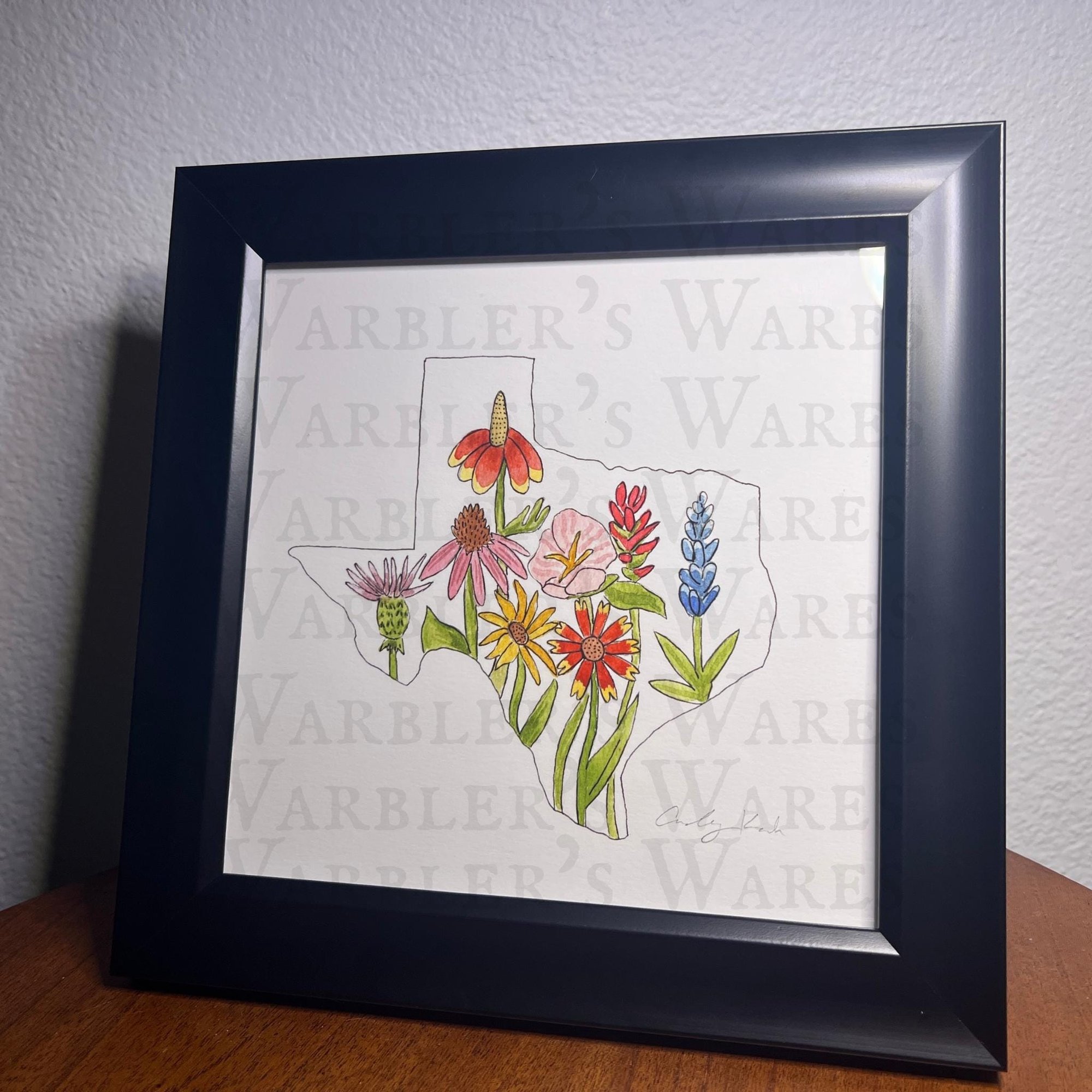 This watercolor print showcases a delicate mix of native Texas wildflowers, painted in vibrant colors. Perfect for adding a touch of natural beauty to any space, it’s a gentle tribute to the colors and charm of the Texas landscape.